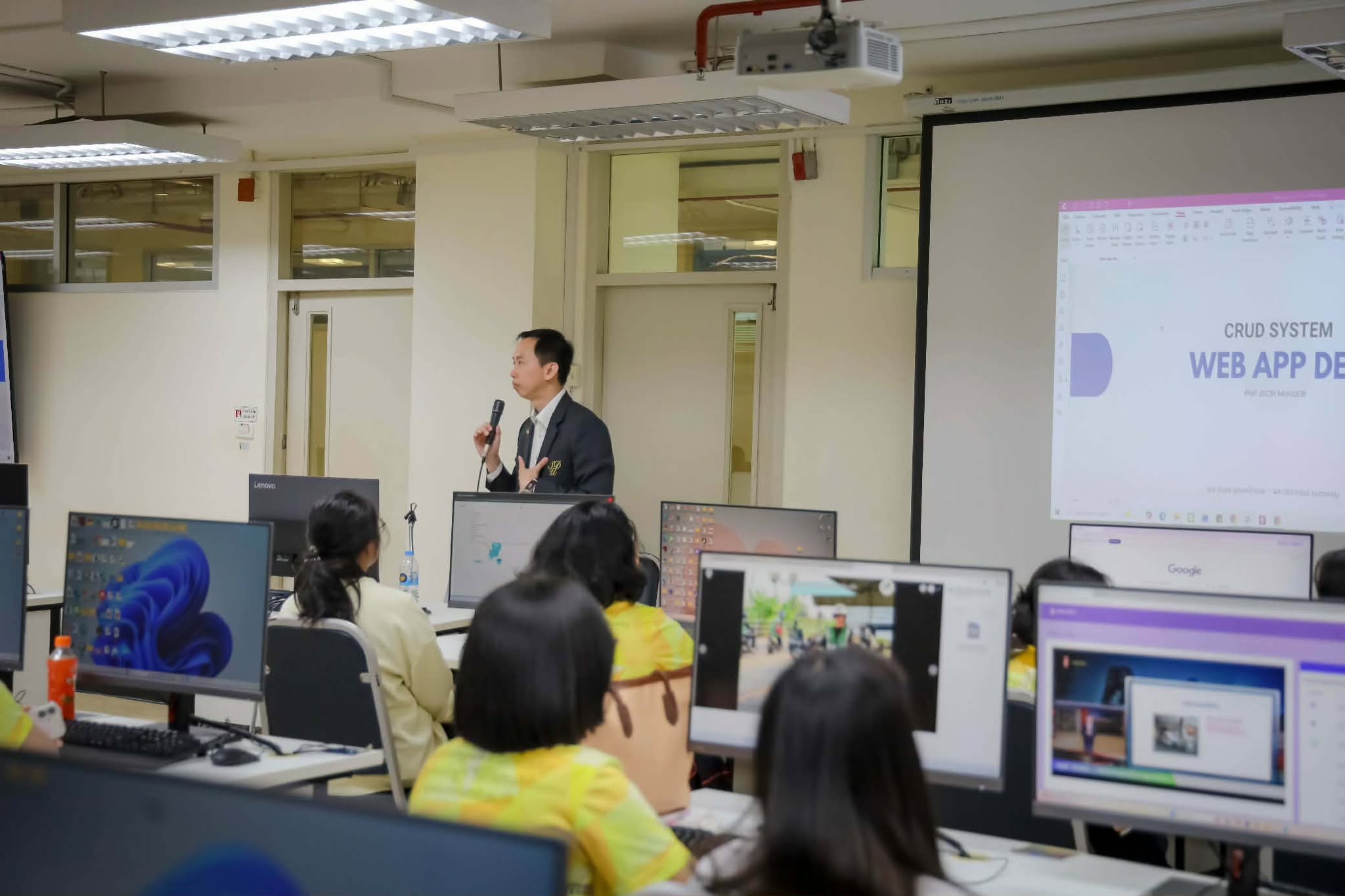 หลักสูตรเทคโนโลยีบัณฑิต สาขาวิชาเทคโนโลยีสารสนเทศ คณะวิทยาศาสตร์และเทคโนโลยี มหาวิทยาลัยสวนดุสิต นำโดย ผู้ช่วยศาสตราจารย์ทินกร ชุณหภัทรกุล ประธานหลักสูตรฯ และ ผู้ช่วยศาสตราจารย์วัชรากรณ์ เนตรหาญ ได้รับเกียรติเป็นวิทยากรบรรยายการอบรมเชิงปฏิบัติการ “การพัฒนาเว็บแอปพลิเคชัน” ภายใต้โครงการพัฒนาสมรรถนะวิชาชีพด้านเทคโนโลยีสารสนเทศ เมื่อวันที่ 23 กุมภาพันธ์ 2569 ณ คณะบริหารธุรกิจและเทคโนโลยีสารสนเทศ มหาวิทยาลัยเทคโนโลยีราชมงคลสุวรรณภูมิ ศูนย์นนทบุรี โดยการได้รับเชิญในครั้งนี้เป็นการนำความเชี่ยวชาญเฉพาะทางด้านเทคโนโลยีสารสนเทศไปถ่ายทอดเพื่อเพิ่มพูนทักษะและสมรรถนะดิจิทัลให้แก่ผู้เข้าร่วมโครงการฯ ทั้งยังเป็นการแสดงศักยภาพทางวิชาการของบุคลากรในหลักสูตรฯ และเสริมสร้างความร่วมมืออันดีระหว่างสถาบันการศึกษาในการร่วมกันขับเคลื่อนองค์ความรู้ด้านเทคโนโลยีให้ก้าวหน้าและทันสมัยยิ่งขึ้น
